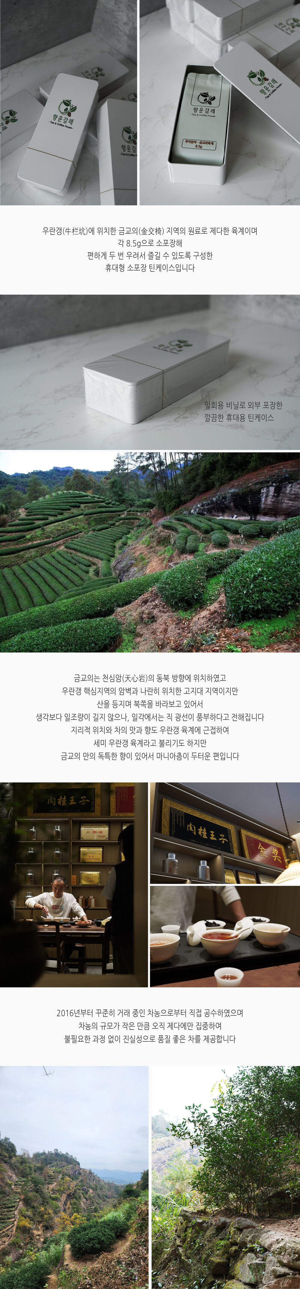 여러 지역의 차를 테이스팅하며 선정한 금교의 육계입니다.